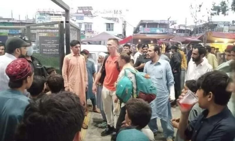 “The foreign couple was going to Afghanistan without informing on Saturday” in a local taxi, the police statement said, adding that the taxi dropped them off at Jamrud Bazaar/Bab-i-Khyber, following which a crowd surrounded them.