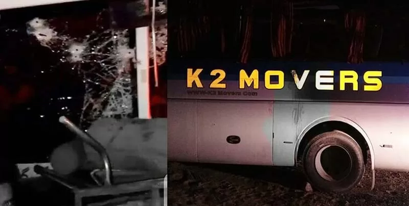 The bus (BLN 4647) operated by K2 Trekkers was coming from Ghizer to Rawalpindi when it came under attack at Hodur area on Karakorum Highway near Chilas by unidentified gunmen.