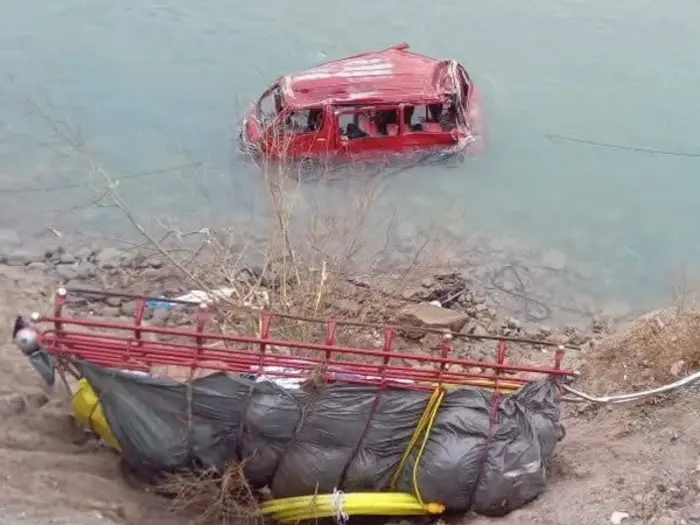 Booni, Jan 16, 2026: A vehicle skidded off the road and plunged into the river near Kuragh early today, leaving a woman dead and 10 other passengers injured, according Rescue 1122 and hospital sources.